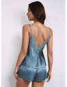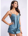 Conjunto em cetim, perfeito para aquelas noites aconchegantes! Este lindo conjunto apresenta um delicado contorno em renda no decote e costas, adicionando um toque de elegância ao tecido macio e sedoso. As alças finas ajustáveis garantem um ajuste confortável, enquanto o shorts proporciona facilidade de movimento. Disponível em um lindo tom de azul, este conjunto foi pensado para fazer se sentir fabulosa e relaxada. Mergulhe no luxo e desfrute de bons sonhos com estilo! 🌙✨